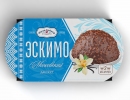 Десерт из шоколадно-воздушного бисквита и фирменного крема Эскимо, десерт украшен молочным шоколадом с добавлением жареного арахиса.
