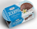 Десерт из шоколадно-воздушного бисквита и фирменного крема Эскимо, десерт украшен молочным шоколадом с добавлением жареного арахиса.